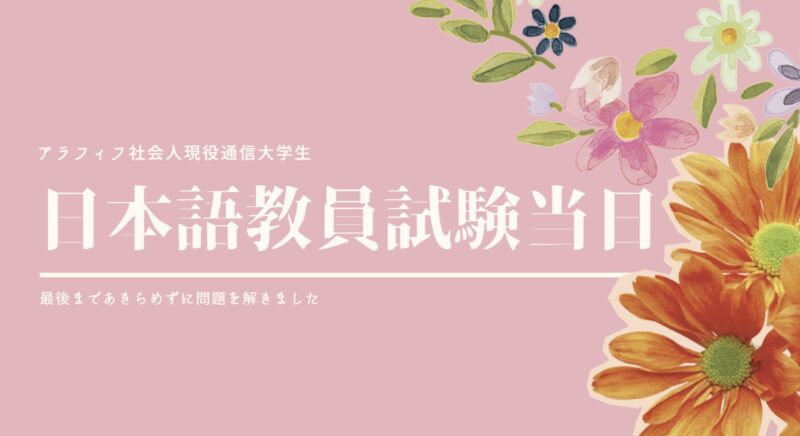 認定心理士と日本語教師を目指していつアラフィフ社会人通信大学生の卒業までの4年間を備忘録的に書いているブログです。特に、お役に立つ情報はございません。今日は、日本語教員試験を始めて受験した感想の備忘録です。