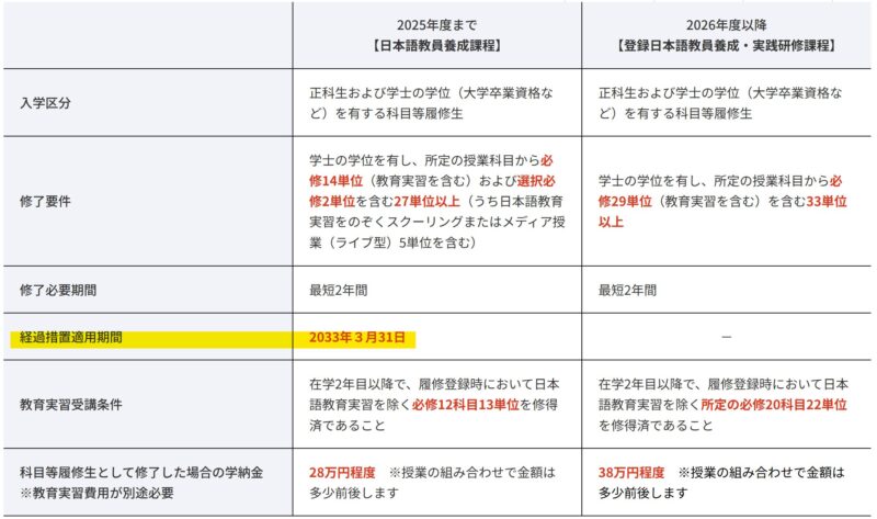 大手前大学通信課程で『日本語教員養成課程(新基準)』をクリアしている方は、免除です。